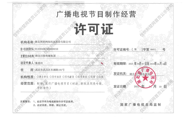 廣播電視節(jié)目制作經(jīng)營許可證(鄂)字第00011號(hào)